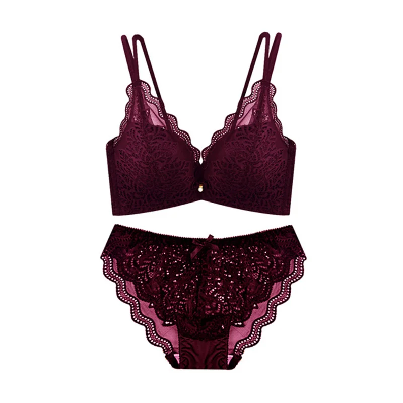 Sexy Lace Bra Sets for Women No Wire Thin Cotton Underwear Solid Lingerie Set