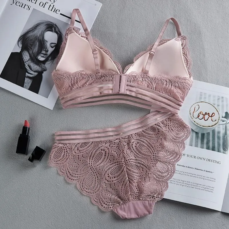 Sexy Wire Free Lace Bra Set Women Hollow Out Lingerie Bra Briefs Set Soft Underwear Set