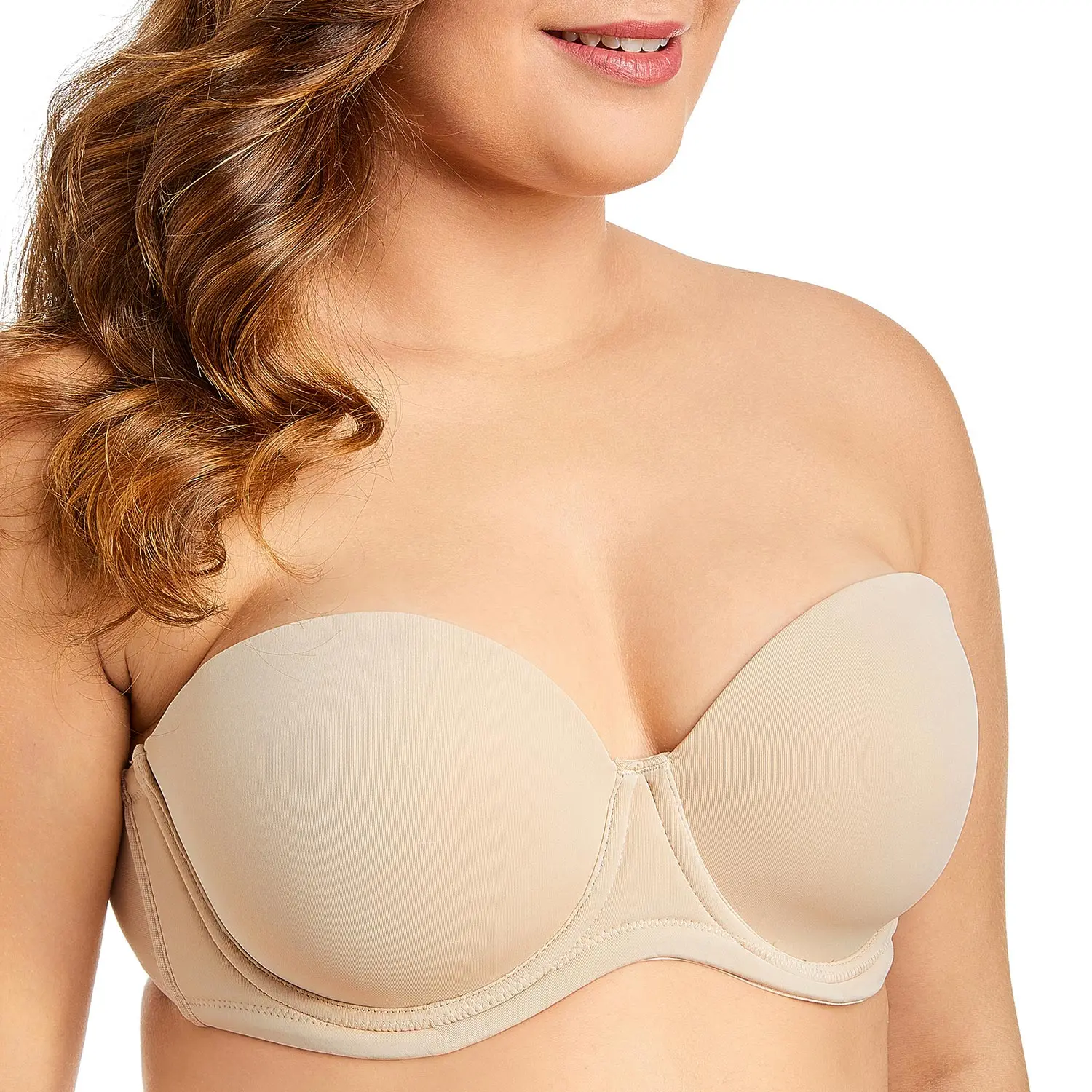 DELIMIRA Women's Seamless Contour Underwire Full Figure Padded Multiway Strapless Bra