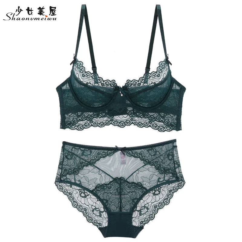 shaonvmeiwu Thin sexy eyelash lace bra set sheer underwear size bra cotton pads to prevent bump